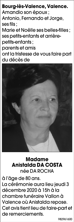 Fallecida en Bourg-lès-Valence (26500) el martes, 1 de diciembre de 2020 a la edad de 80 años