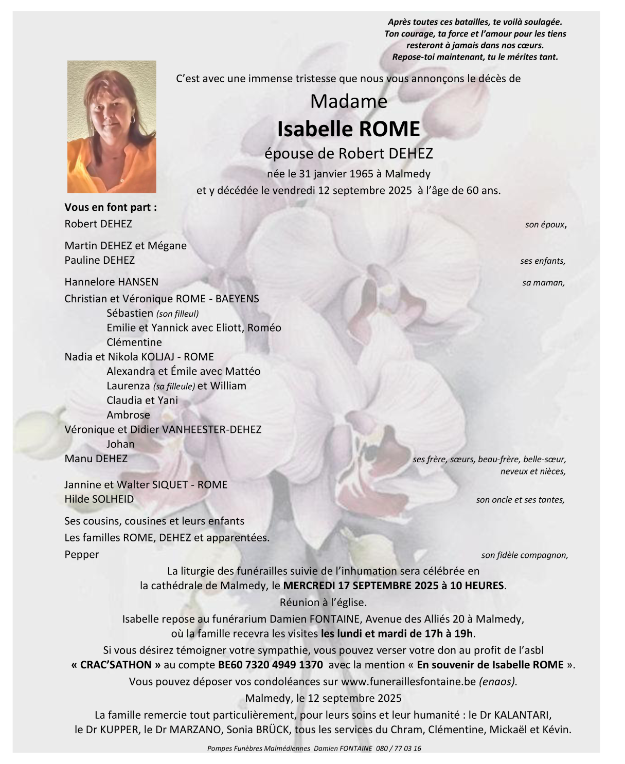Died in Malmedy (4960, Belgium) on 12 September 2025 at the age of 60 years