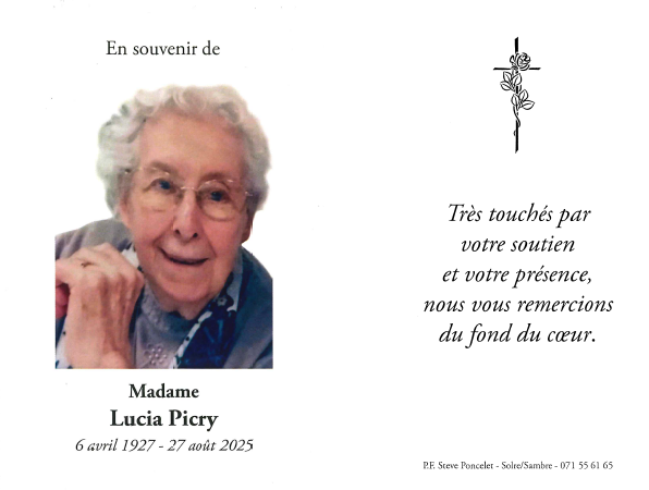 Décédée à Solre-sur-Sambre (6560, Belgique) le mercredi 27 août 2025 à l'âge de 98 ans