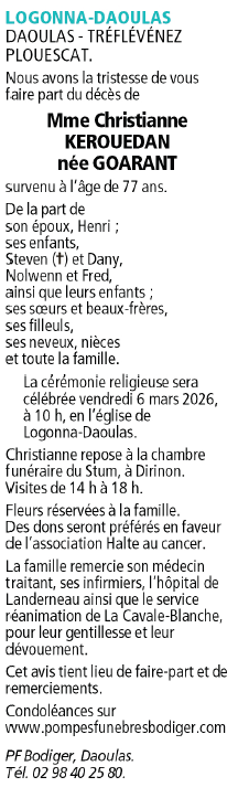 Died in Brest (29200) on 02 March 2026 at the age of 77 years