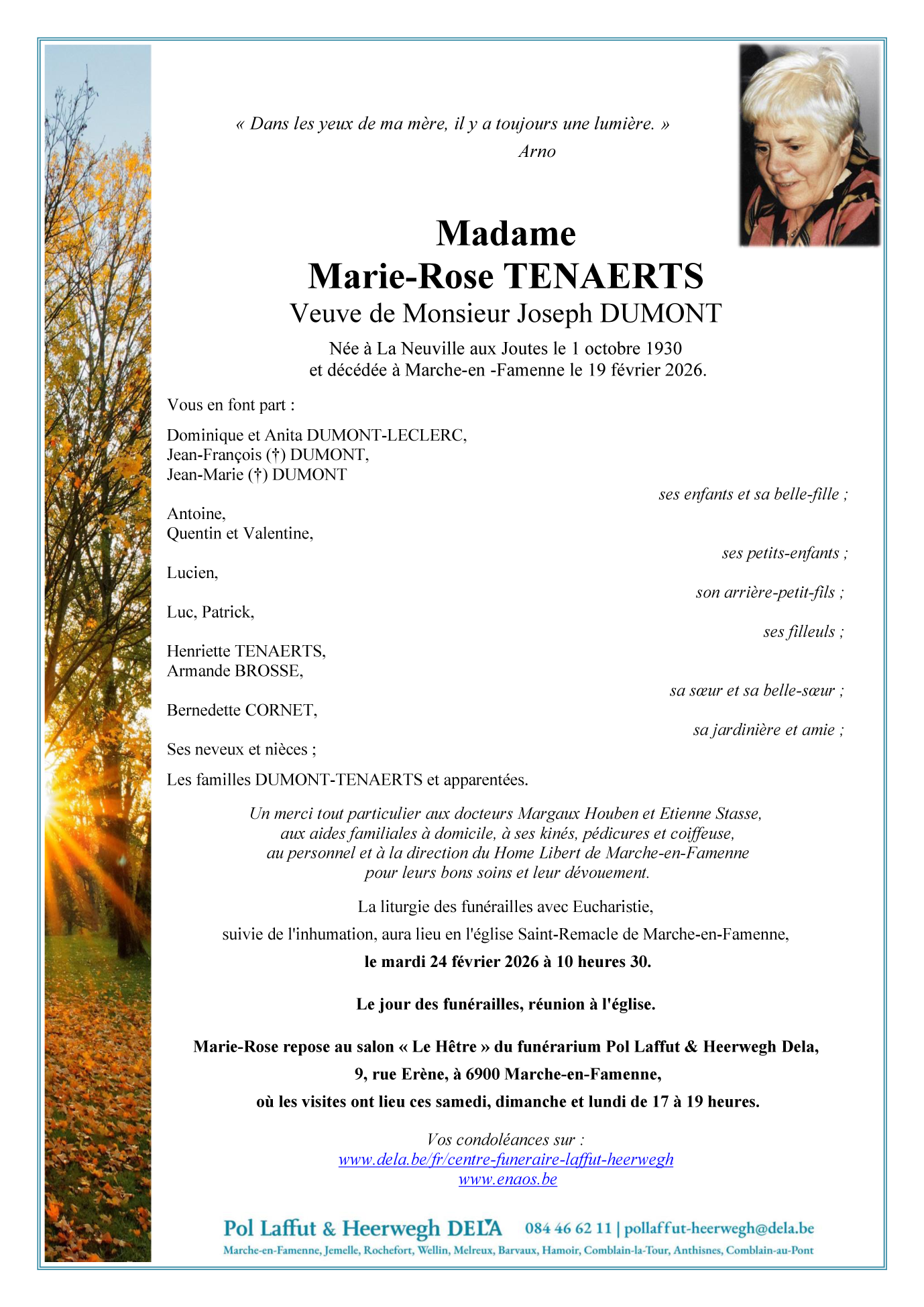 Overleden te Marche-en-Famenne (6900, België) op donderdag 19 februari 2026 op 95-jarige leeftijd