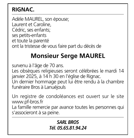 Décédé à Rodez (12000) le vendredi 10 janvier 2025 à l'âge de 70 ans