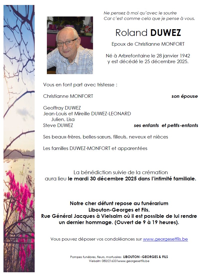 Décédé à Arbrefontaine (4990, Belgique) le jeudi 25 décembre 2025 à l'âge de 83 ans