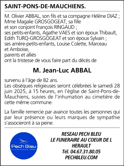 Décédé à Montagnac (34530) le mardi 24 juin 2025 à l'âge de 82 ans