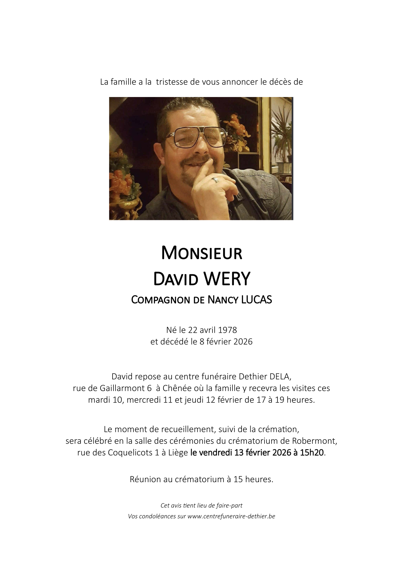 Décédé à Liège (4000, Belgique) le dimanche 8 février 2026 à l'âge de 47 ans