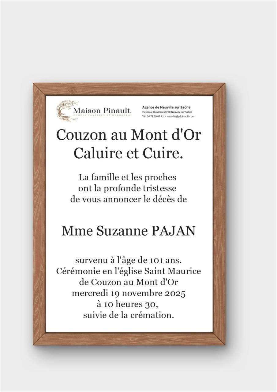 Décédée à Couzon-au-Mont-d'Or (69270) le mercredi 12 novembre 2025 à l'âge de 101 ans