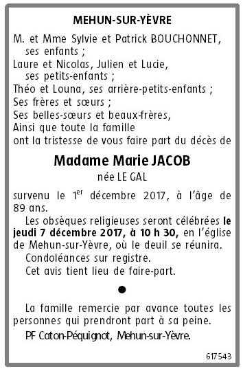 Madame Marie JACOB née LE GAL