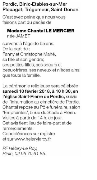 Madame Chantale LE MERCIER née JAMET