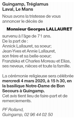 Overleden te « Localité inconnue » op maandag 10 februari 2020 op 70-jarige leeftijd