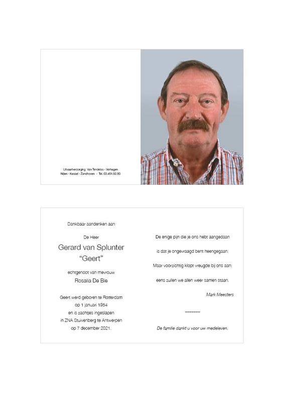 Overleden te Antwerpen (2060, België) op dinsdag 7 december 2021 op 67-jarige leeftijd