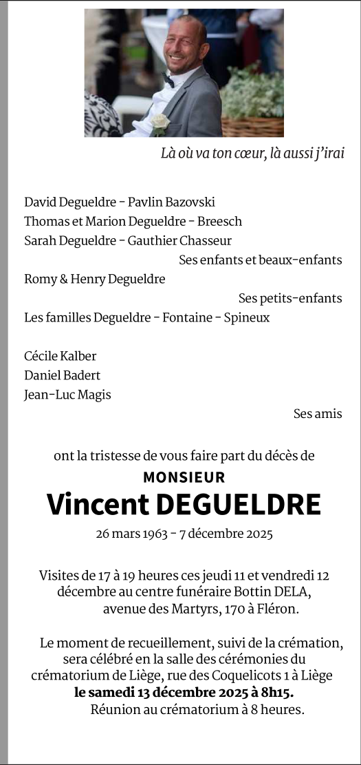 Décédé à Liège (4000, Belgique) le dimanche 7 décembre 2025 à l'âge de 62 ans