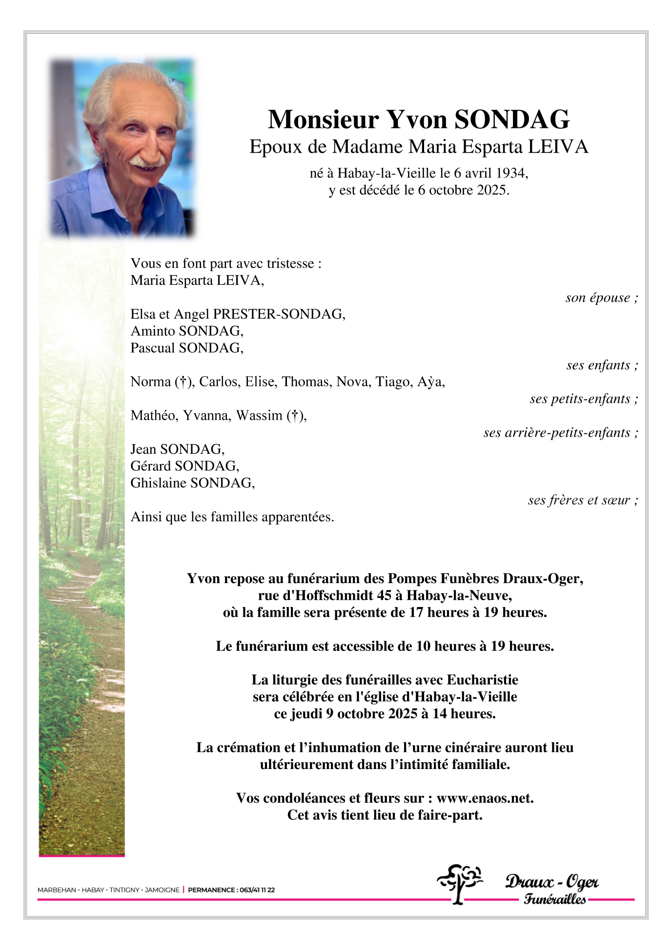 Décédé à Habay-la-Vieille (6723, Belgique) le lundi 6 octobre 2025 à l'âge de 91 ans