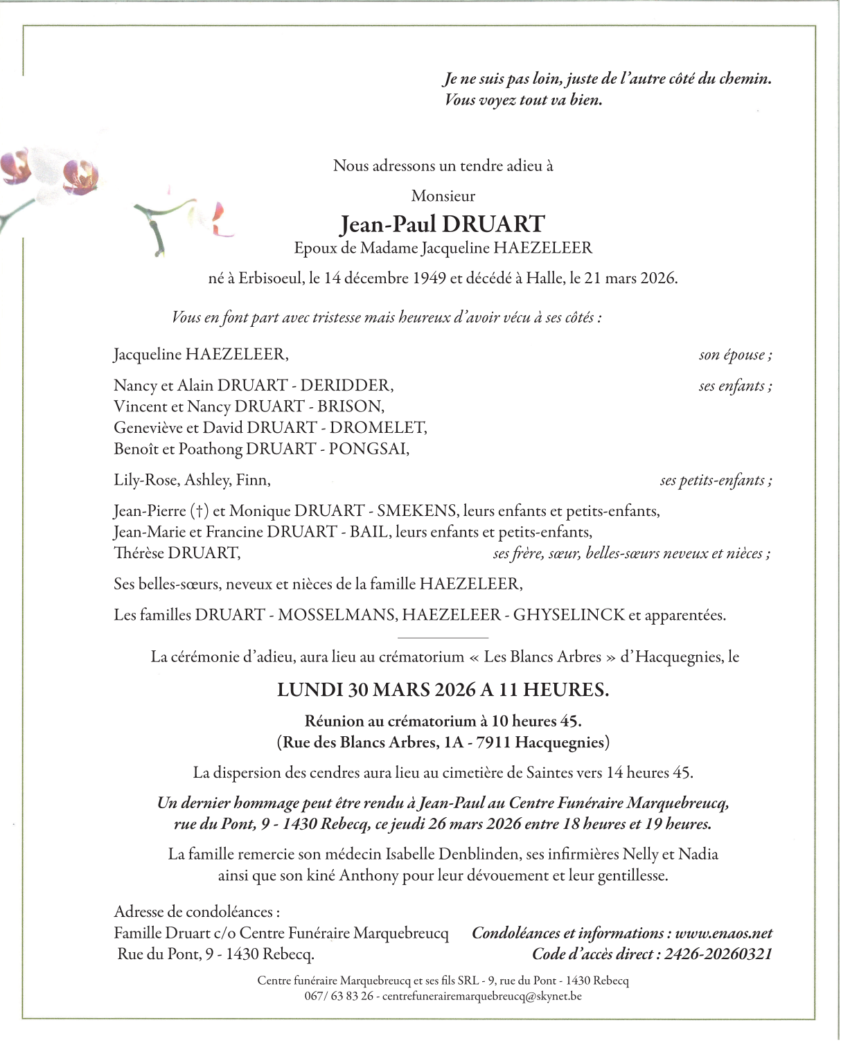 Décédé à Halle (1500, Belgique) le samedi 21 mars 2026 à l'âge de 76 ans