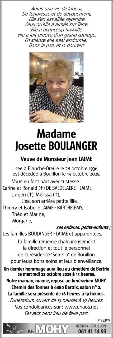 Madame Josette BOULANGER