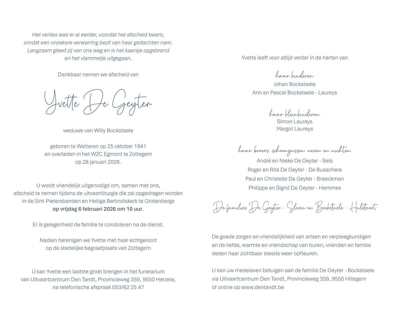 Fallecida en Zottegem (9620, Bélgica) el miércoles, 28 de enero de 2026 a la edad de 84 años