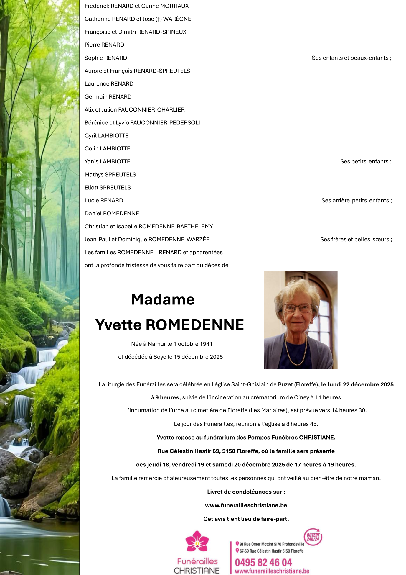 Fallecida en Floreffe (5150, Bélgica) el lunes, 15 de diciembre de 2025 a la edad de 84 años