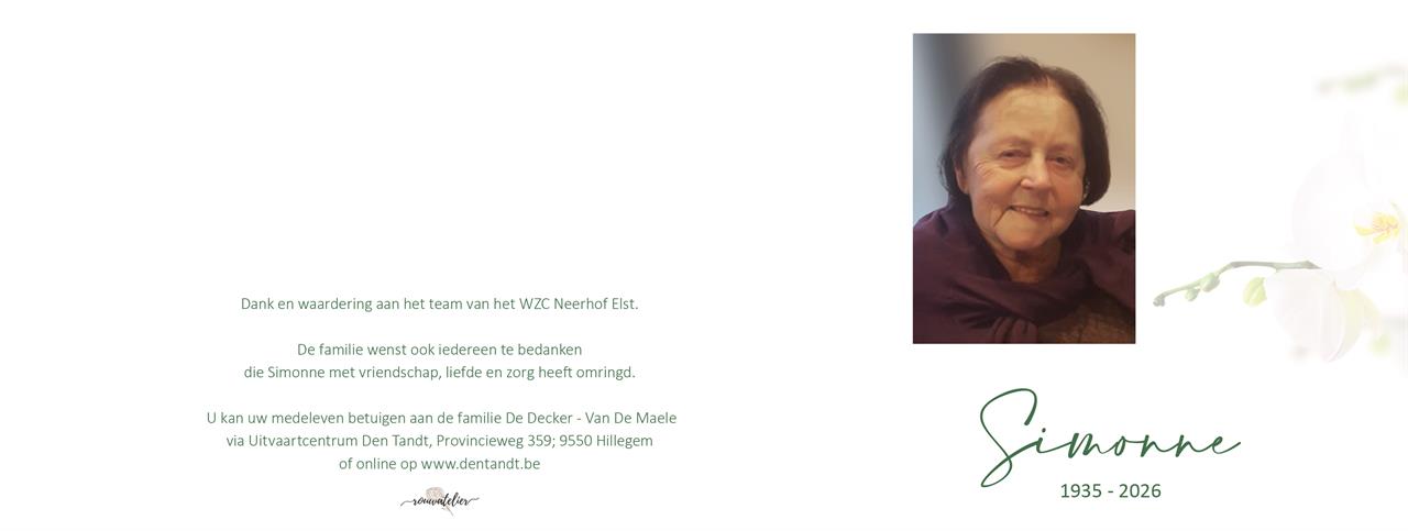 Décédée à Ronse (9600, Belgique) le jeudi 15 janvier 2026 à l'âge de 90 ans