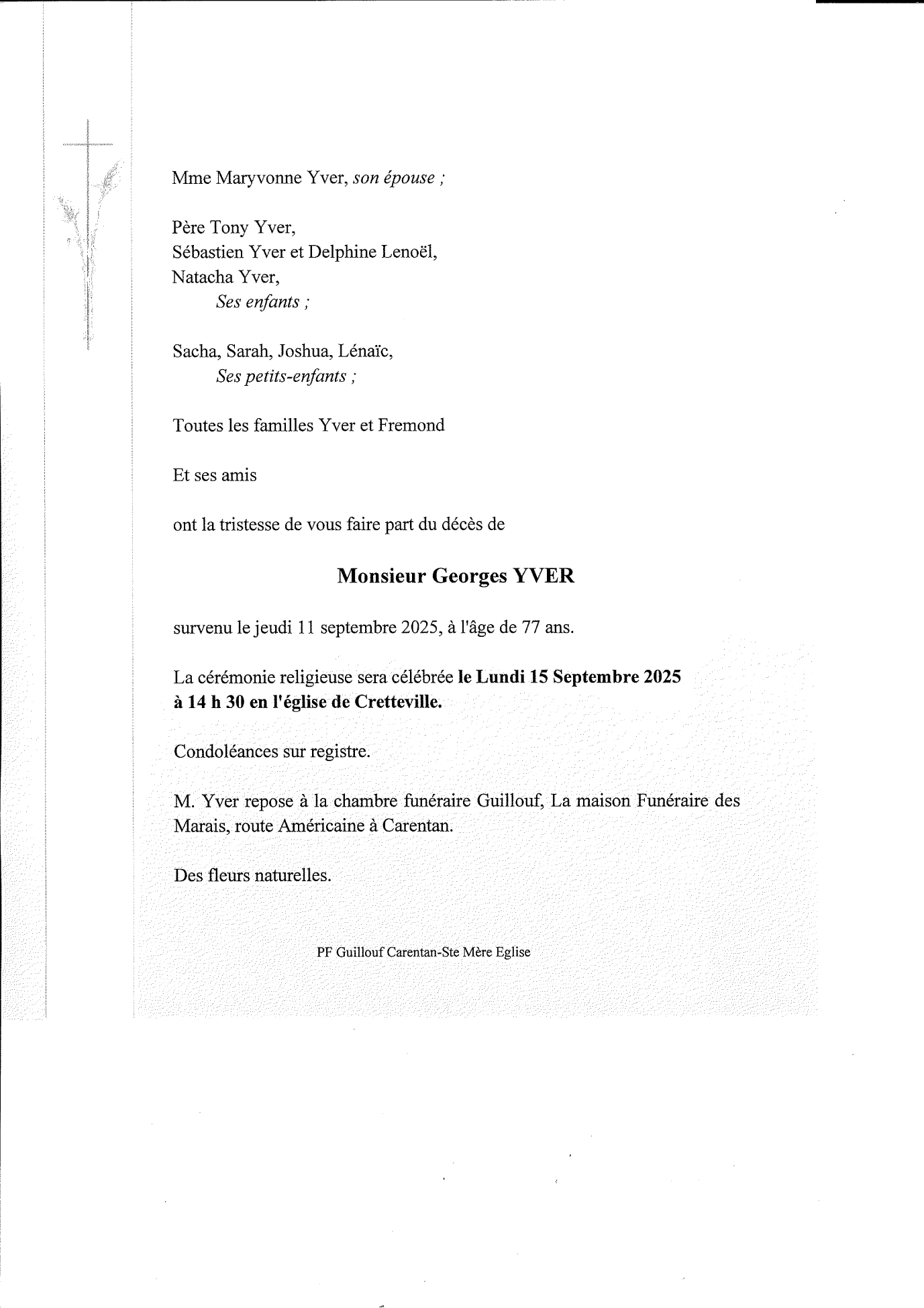 Overleden te Cretteville (50250) op donderdag 11 september 2025 op 77-jarige leeftijd