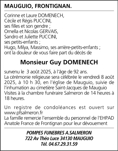 Décédé à Frontignan (34110) le dimanche 3 août 2025 à l'âge de 92 ans