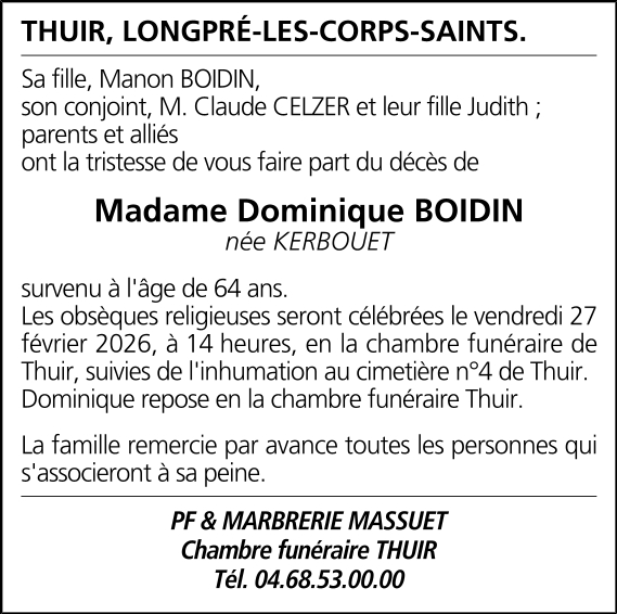 Madame Dominique BOIDIN née KERBOUET