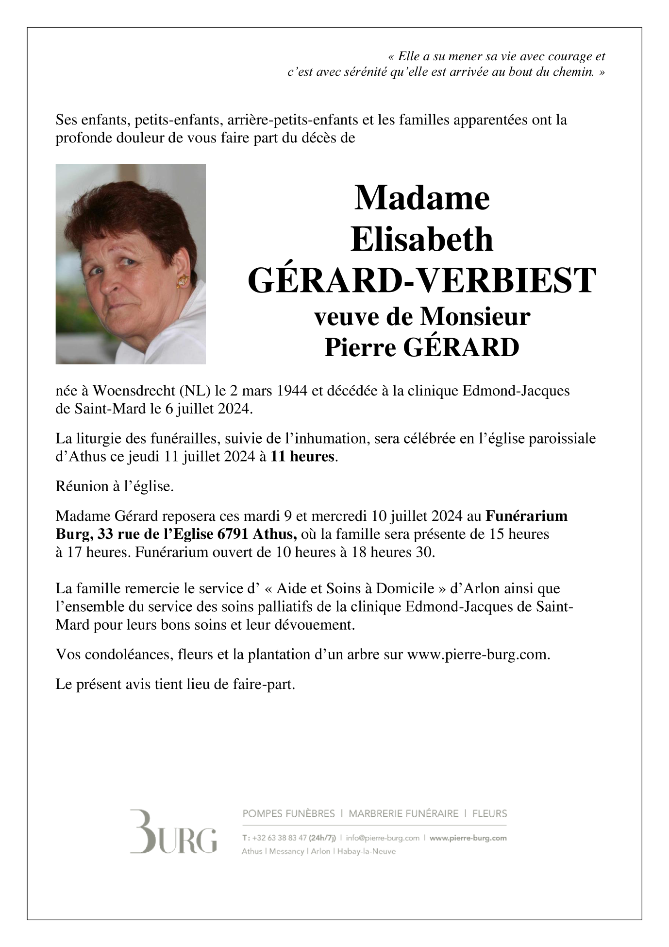 Overleden te Saint-Mard (6762, België) op zaterdag 6 juli 2024 op 80-jarige leeftijd