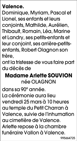 Madame Arlette SOUVION née OLAGNON