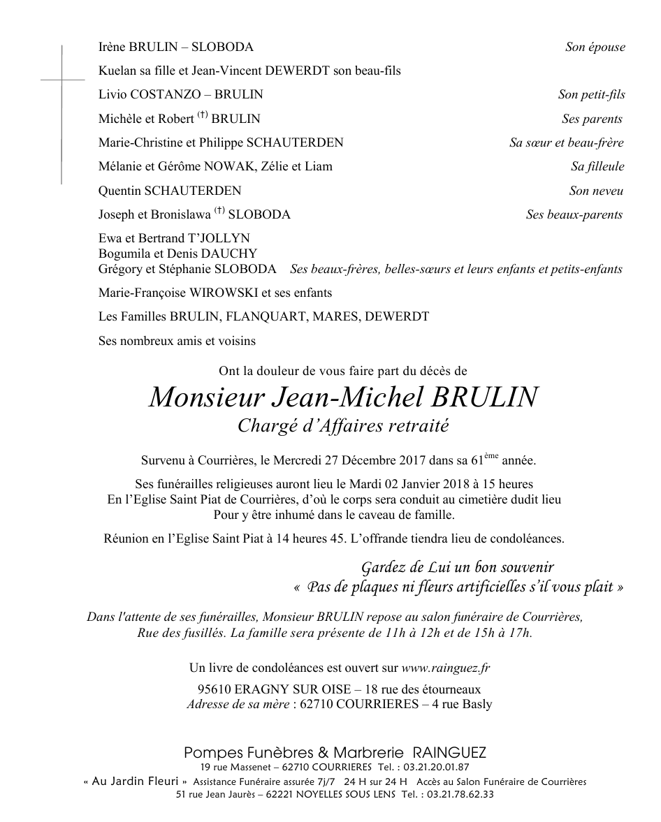 Fallecido en Courrières (62710) el miércoles, 27 de diciembre de 2017 a la edad de 60 años