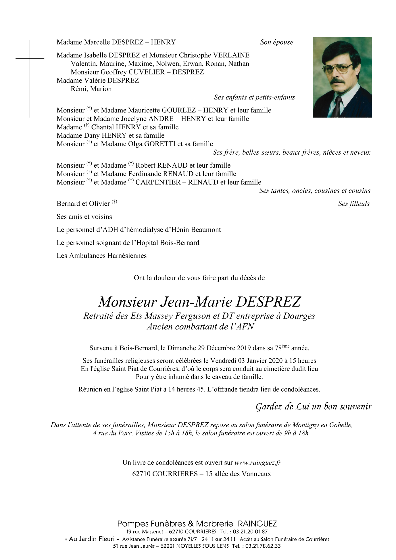 Décédé à Bois-Bernard (62320) le dimanche 29 décembre 2019 à l'âge de 77 ans