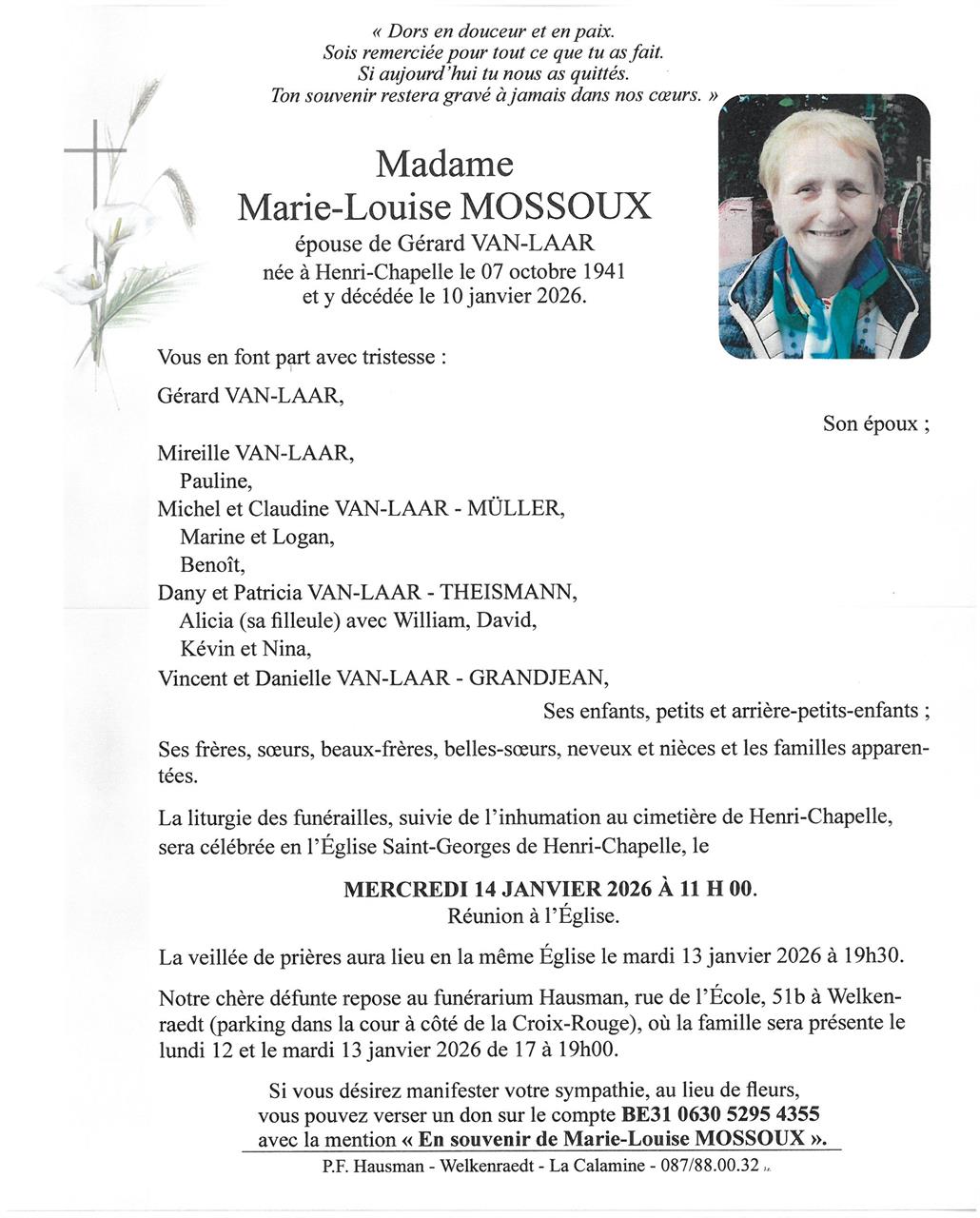 Died in Henri-Chapelle (4841, Belgium) on 10 January 2026 at the age of 84 years
