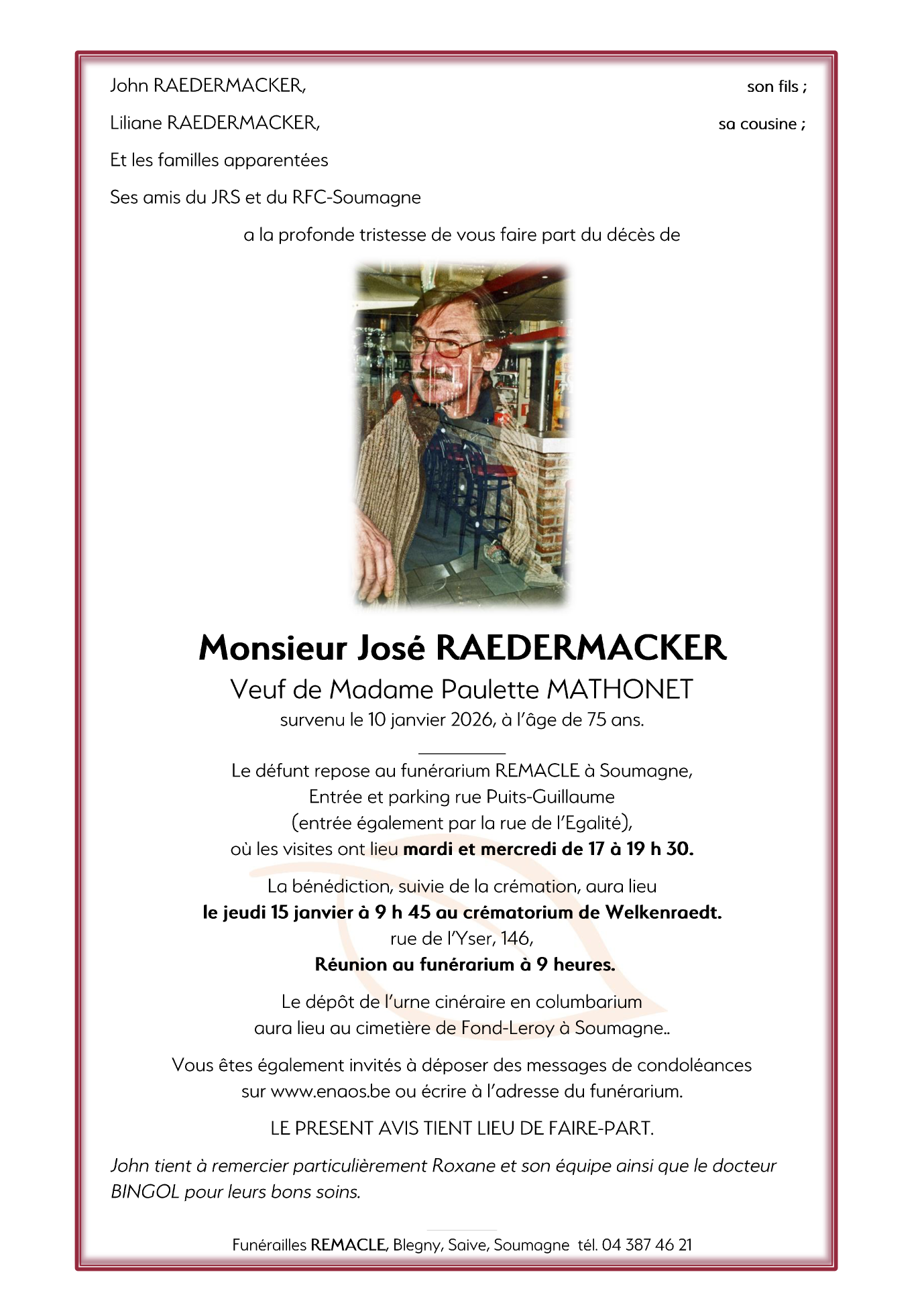 Overleden te Soumagne (4630, België) op zaterdag 10 januari 2026 op 75-jarige leeftijd