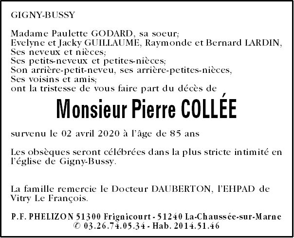 Overleden te Vitry-le-François (51300) op donderdag 2 april 2020 op 85-jarige leeftijd