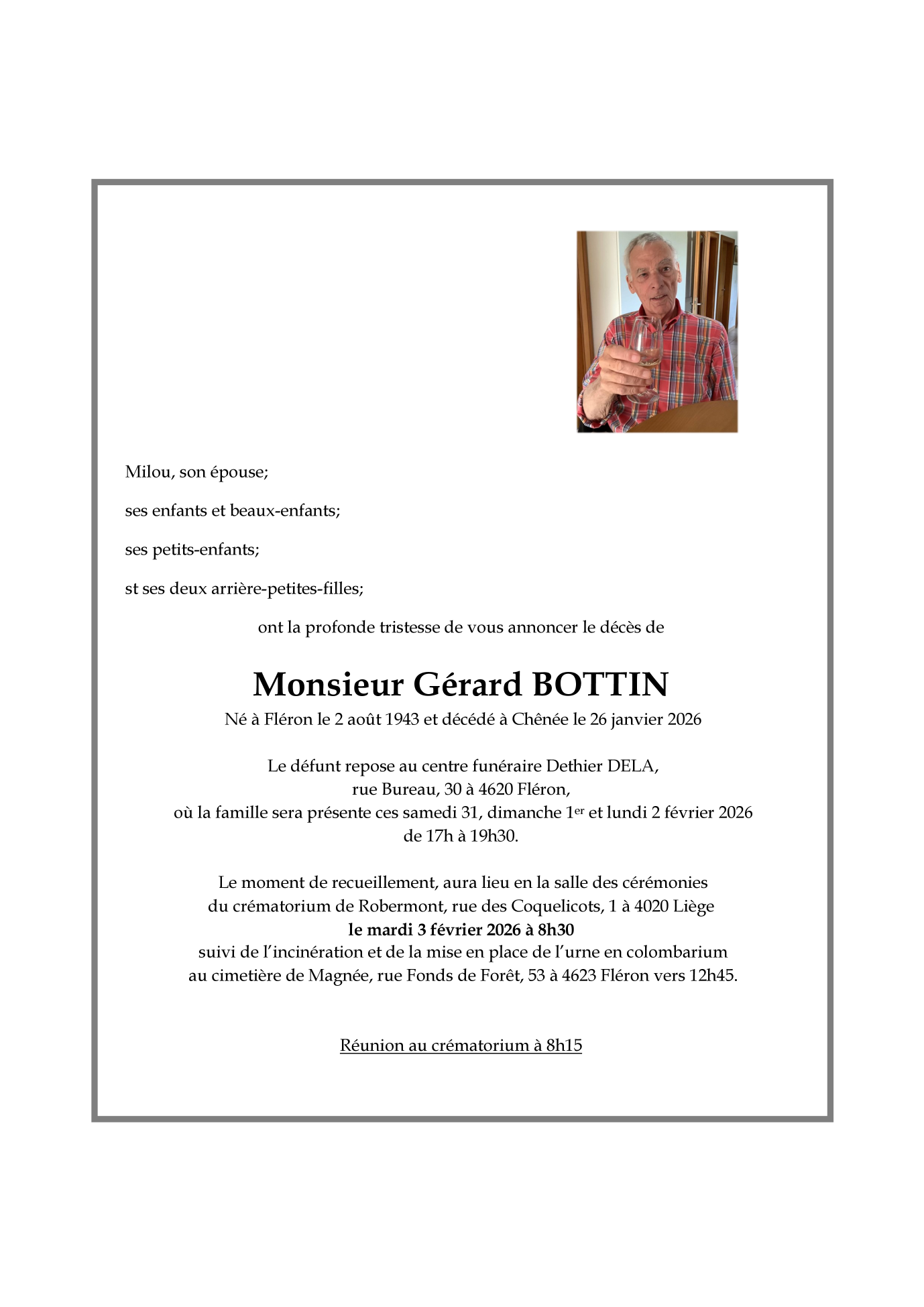 Décédé à Chênée (4032, Belgique) le lundi 26 janvier 2026 à l'âge de 82 ans
