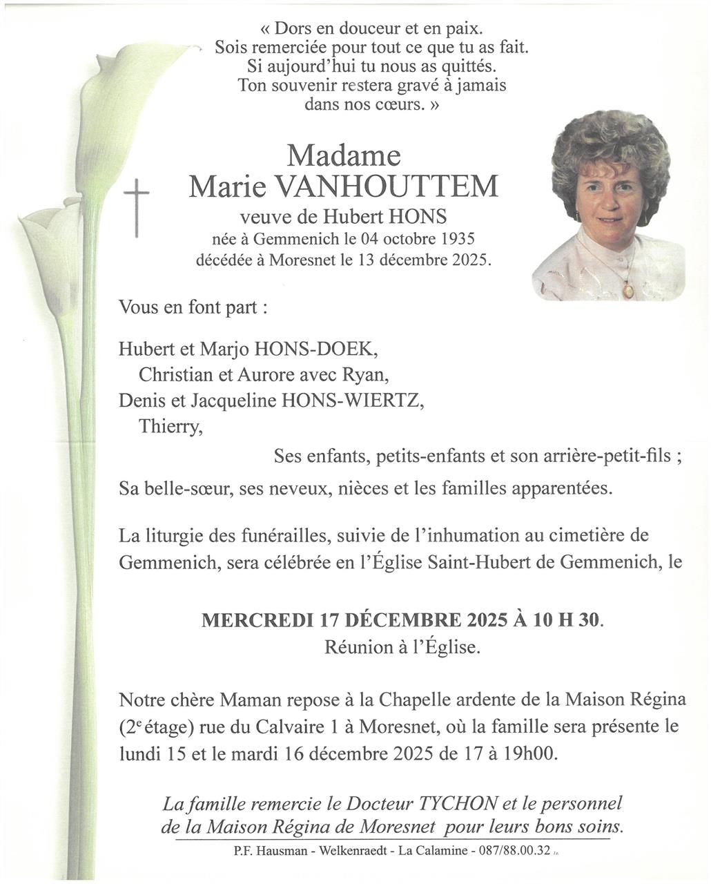 Madame Marie VANHOUTTEM