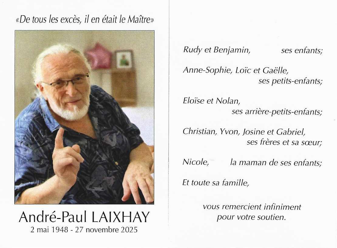 Died in Liège (4000, Belgium) on 27 November 2025 at the age of 77 years