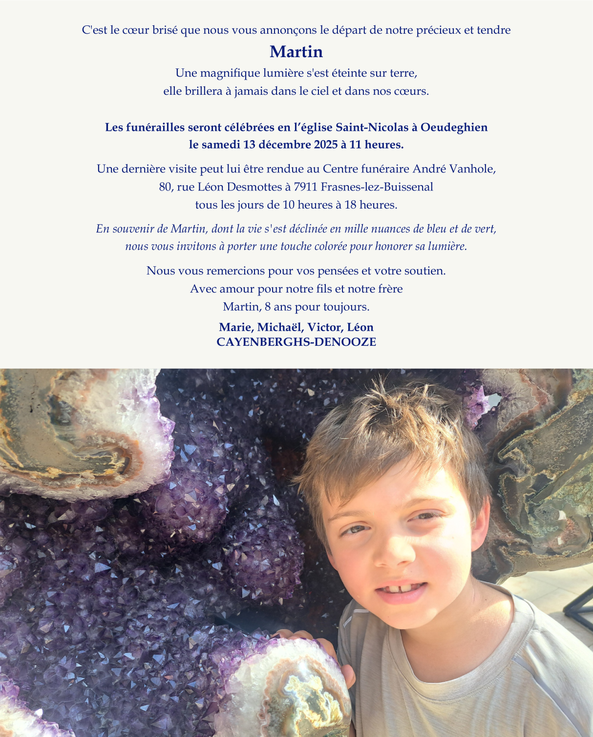 Décédé à Gand (9000, Belgique) le samedi 6 décembre 2025 à l'âge de 8 ans