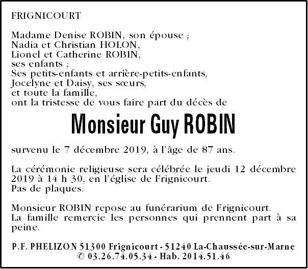 Overleden te Bezannes (51430) op zaterdag 7 december 2019 op 87-jarige leeftijd