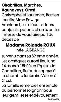 Madame Rolande ROUX née LAGRANGE