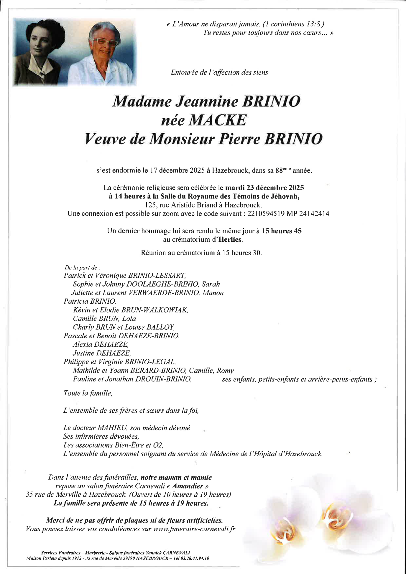 Fallecida en Hazebrouck (59190) el miércoles, 17 de diciembre de 2025 a la edad de 87 años