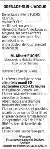 Fallecido en Saint-Sever (40500) el miércoles, 24 de septiembre de 2025 a la edad de 89 años