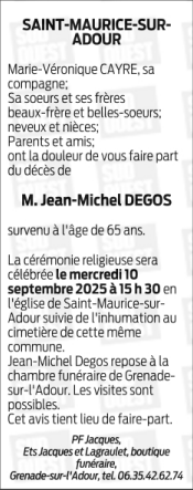 Died in Saint-Pierre-du-Mont (40280) on 05 September 2025 at the age of 65 years