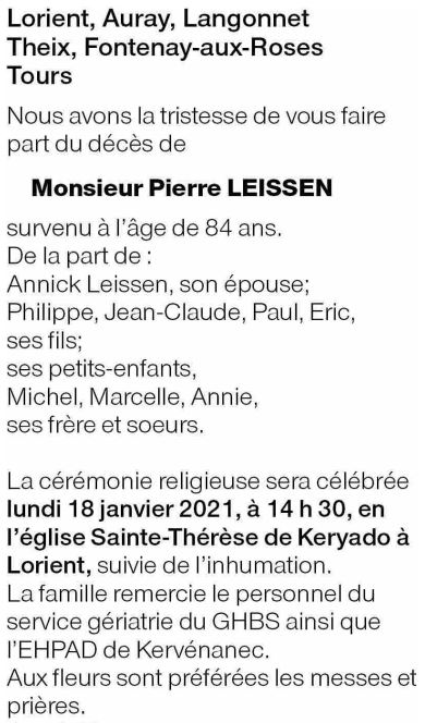 Overleden te Lorient (56100) op woensdag 13 januari 2021 op 84-jarige leeftijd