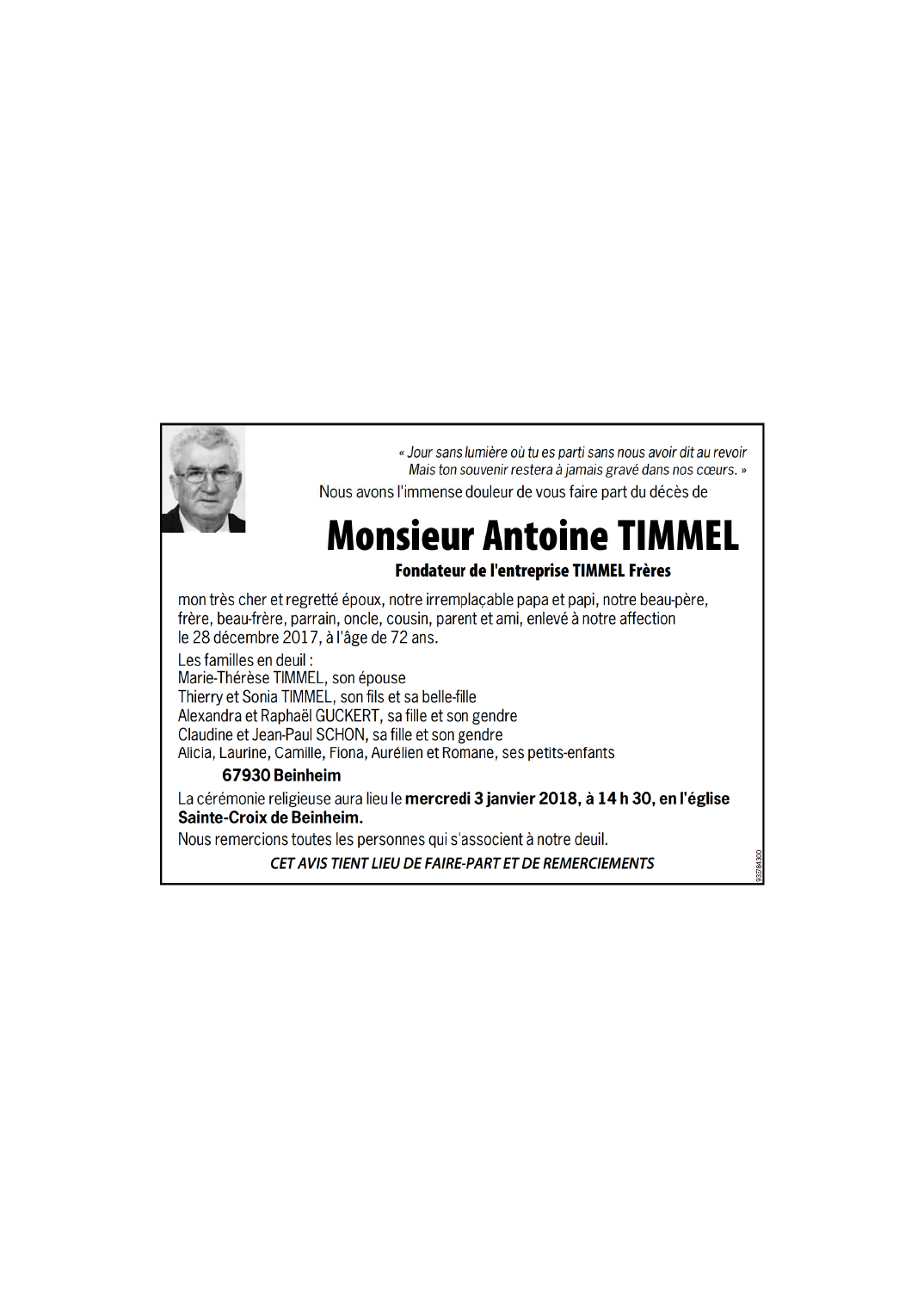 Décédé à Seltz (67470) le jeudi 28 décembre 2017 à l'âge de 72 ans