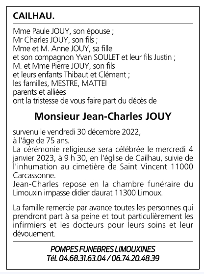 Fallecido en Cailhau (11240) el viernes, 30 de diciembre de 2022 a la edad de 75 años