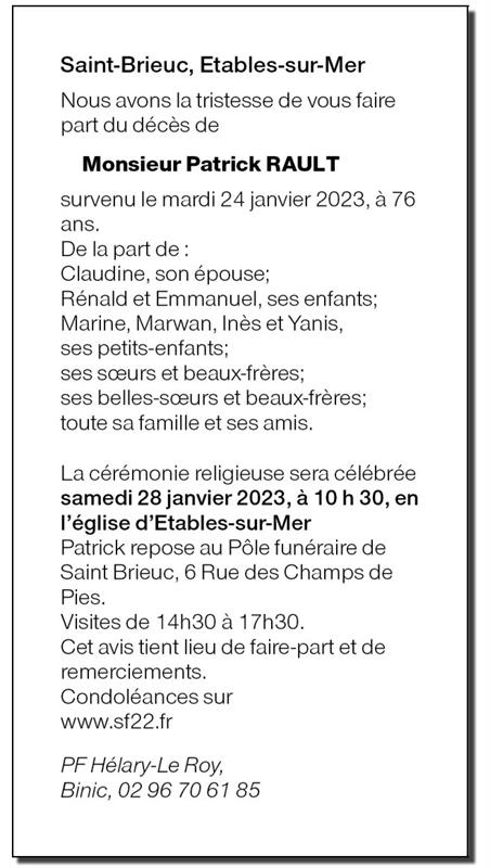 Fallecido en Saint-Brieuc (22000) el martes, 24 de enero de 2023 a la edad de 76 años