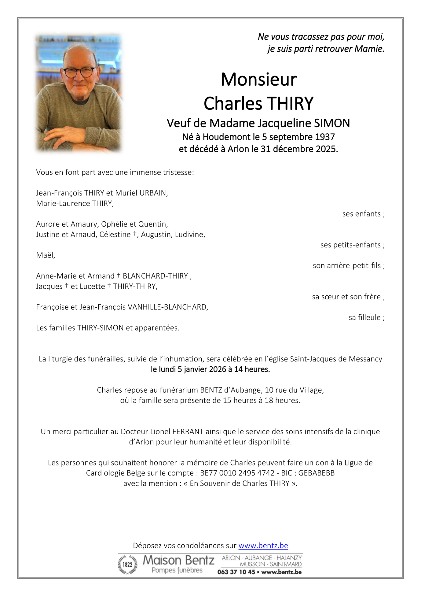 Décédé à Arlon (6700, Belgique) le mercredi 31 décembre 2025 à l'âge de 88 ans