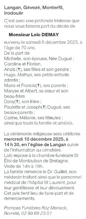 Died in Rennes (35700) on 06 December 2025 at the age of 70 years