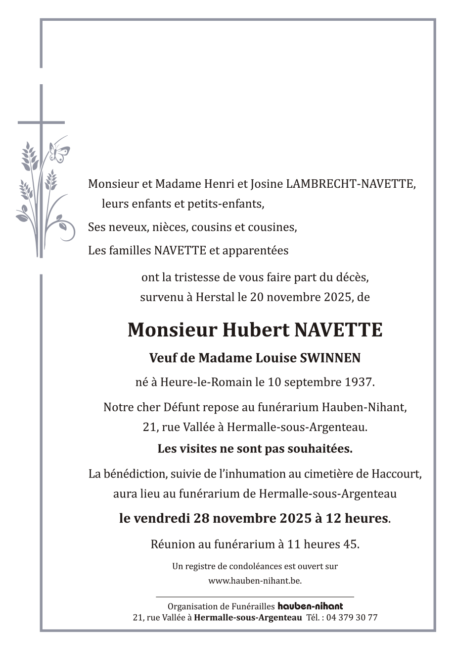 Décédé à Herstal (4040, Belgique) le jeudi 20 novembre 2025 à l'âge de 88 ans