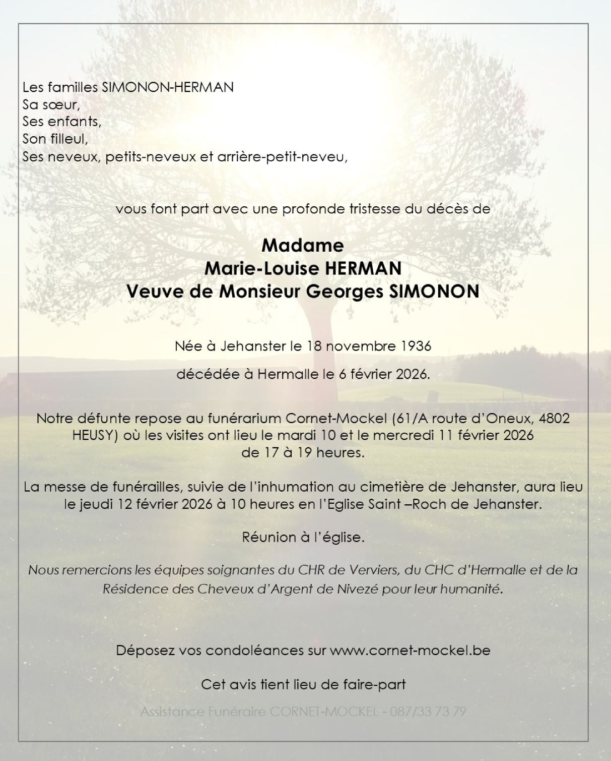 Overleden te Hermalle-sous-Argenteau (4681, België) op vrijdag 6 februari 2026 op 89-jarige leeftijd