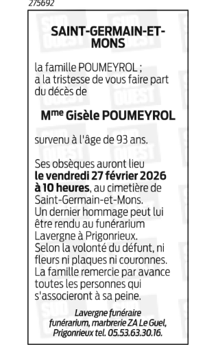 Fallecida en Bergerac (24100) el martes, 24 de febrero de 2026 a la edad de 93 años