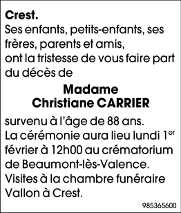 Overleden te Valence (26000) op dinsdag 26 januari 2021 op 88-jarige leeftijd